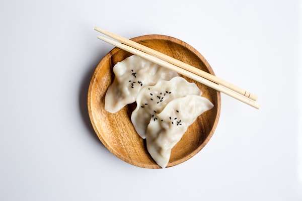 Crispy pan-fried dumplings filled with seasoned pork and vegetables.
